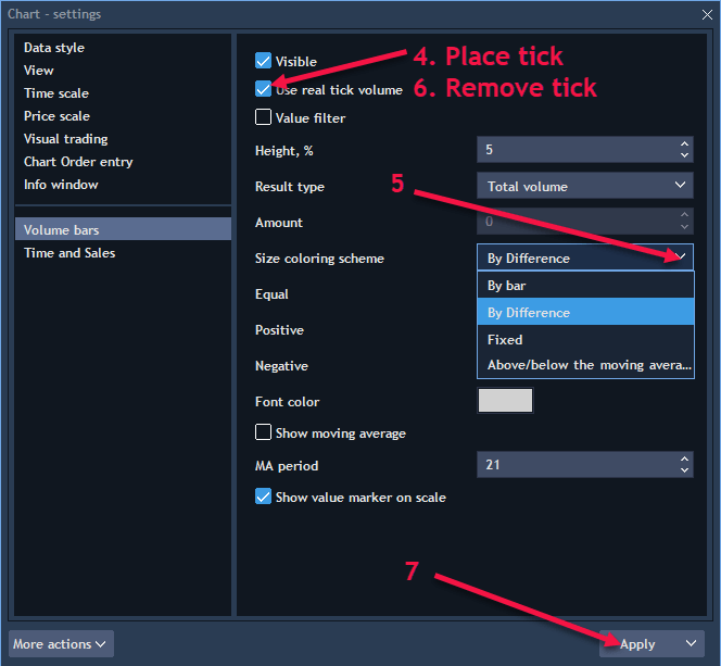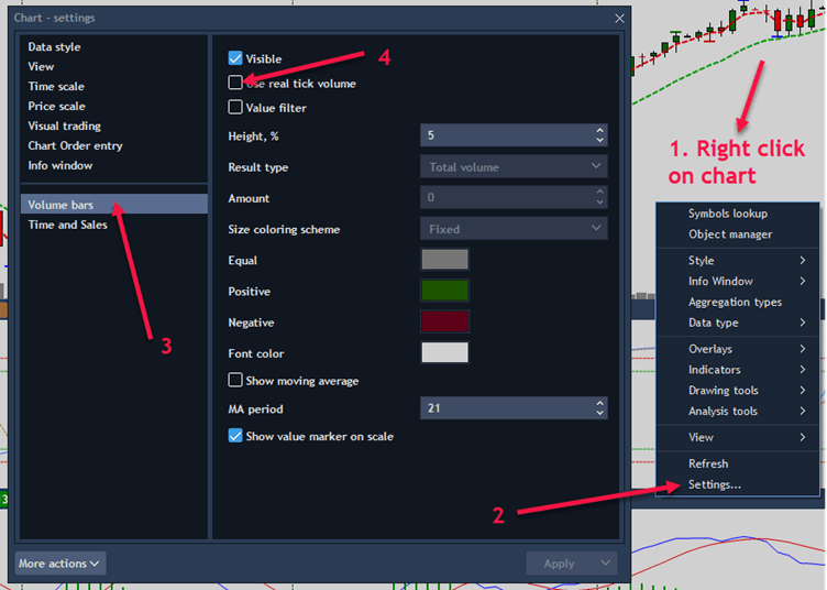 - Click to place tick on ‘Use real tick volume’