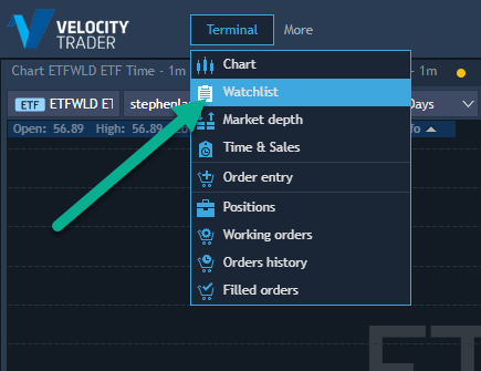 6. Add a Watchlist by clicking Terminal > Watchlist