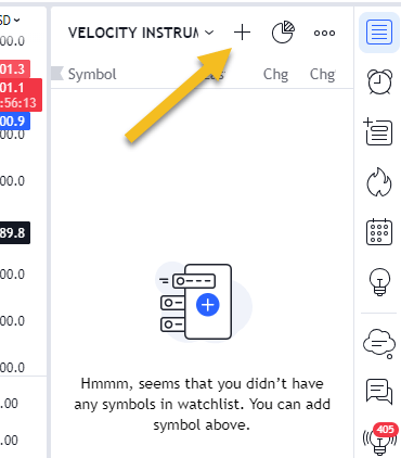 Now, because these instruments are only searchable when you are logged in to Velocity Trade, you may want to add them to a watchlist to be able to view them when your Velocity account is not linked. To do this, do the following: